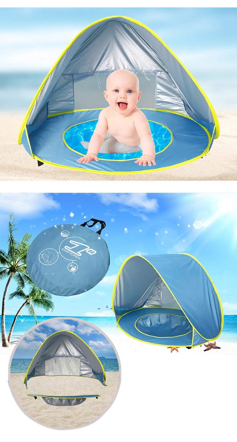 DESEJA PROTEGER SEU BEBÊ DOS RAIOS UV PREJUDICIAIS NA PRAIA? PROTEGÊ-LOS ENQUANTO SE DIVERTE COM ESTA BARRACA DE PRAIA!